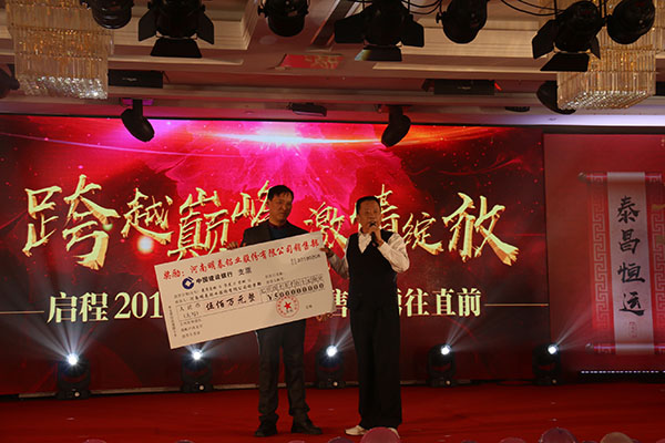 一分耕耘一分收獲,2017年成績的背后,離不開每一位明泰人的辛勤付出和努力拼搏。是他們的奮發向前、永不言敗,在不斷的摸索和奉獻中收獲了今天的喜人成績。明泰公司為表達對明泰人銳意進取、忠義奉獻的感恩之情,在本次年會上的重要環節——頒獎典禮中,特為他們準備了“最佳貢獻團隊獎、“最佳團隊獎”、“優秀員工”、“最佳新人獎”,本年度較大的獎項500萬大獎由董事長為賀總頒獎,他們為公司伙伴樹立了榜樣,讓大家感動滿滿、備受鼓舞!