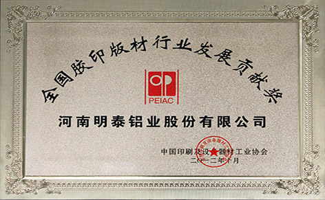 從2005年至今,公司PS版基/CTP版基銷量全國,在高端市場的占有率也已達80%以上。在2012的全國印刷行業(yè)協(xié)會上,河南明泰鋁業(yè)獲得了發(fā)展貢獻獎。